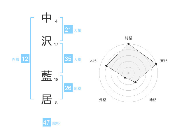 中沢 藍居さんの総格は47画の5点!