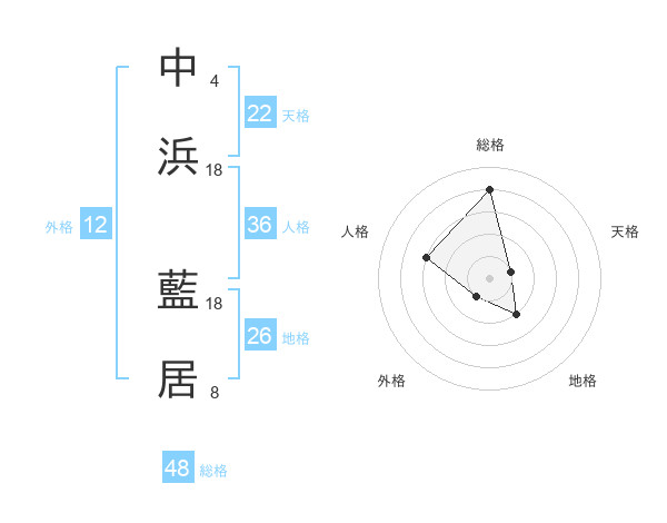 中浜 藍居さんを姓名の画数から五運を鑑定