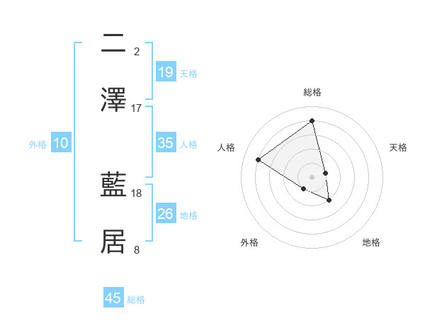 二澤 藍居さんを姓名の画数から五運を鑑定