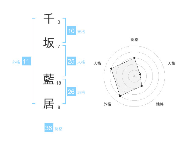 千坂 藍居さんを姓名の画数から五運を鑑定