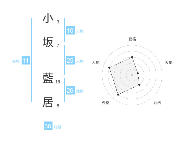 小坂 藍居さんを姓名の画数から五運を鑑定