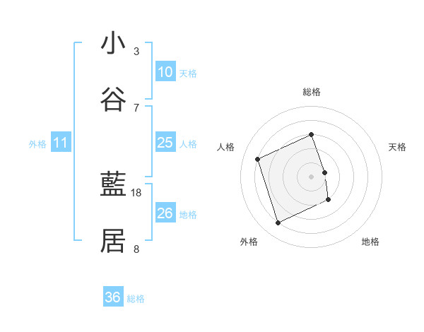 小谷 藍居さんを姓名の画数から五運を鑑定