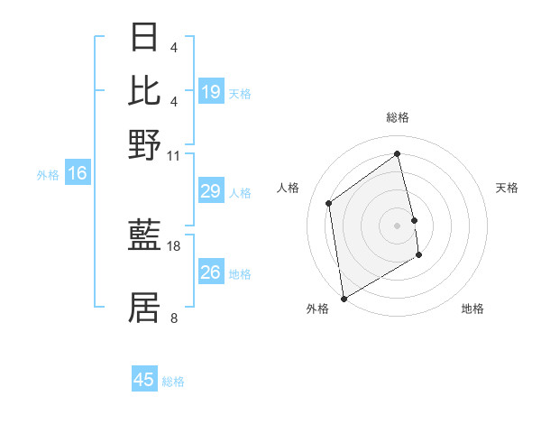 日比野 藍居さんを姓名の画数から五運を鑑定