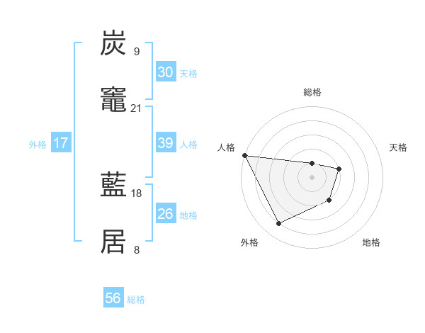 炭竈 藍居さんの総格は56画の1点!