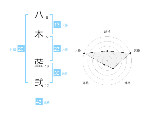 八本 藍弐さんを姓名の画数から五運を鑑定