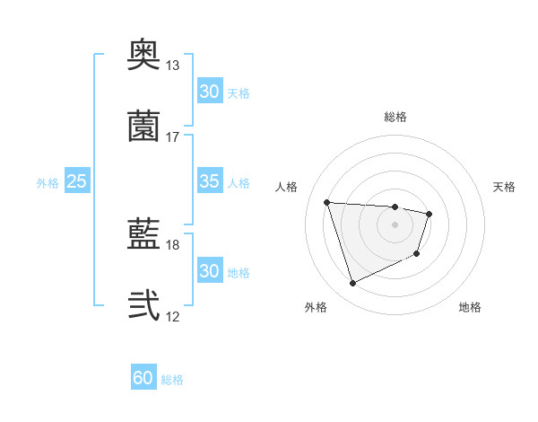 奥薗 藍弐さんの地格は30画の2点!