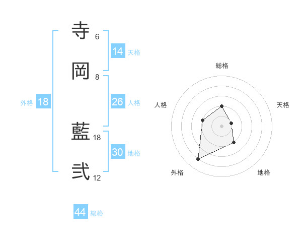 寺岡 藍弐さんを姓名の画数から五運を鑑定