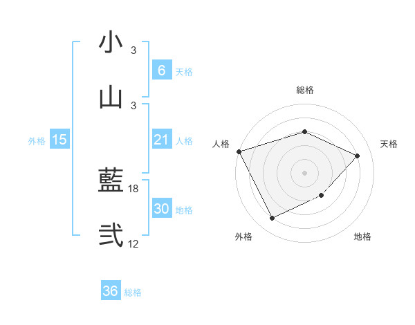 小山 藍弐さんを姓名の画数から五運を鑑定