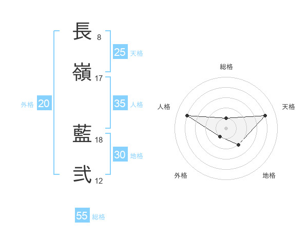 長嶺 藍弐さんを姓名の画数から五運を鑑定