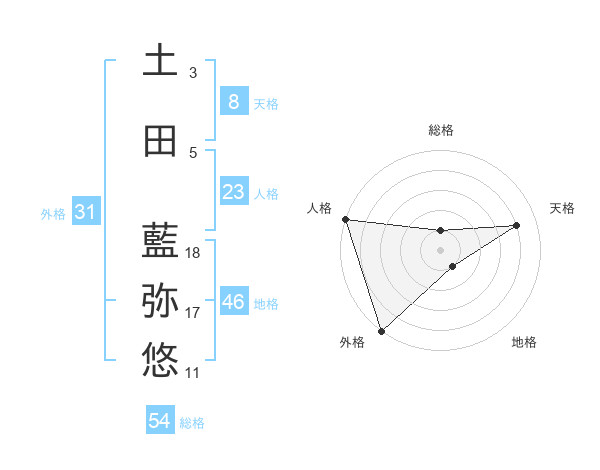 土田 藍弥悠さんを姓名の画数から五運を鑑定