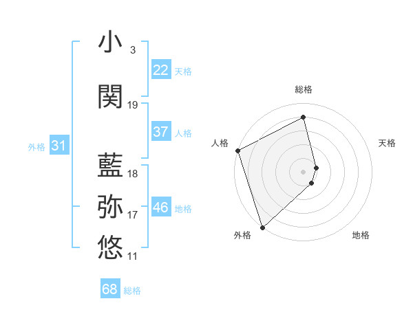 小関 藍弥悠さんの総格は68画の4点