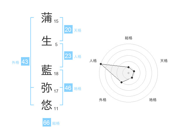 蒲生 藍弥悠さんの総格は66画の1点!