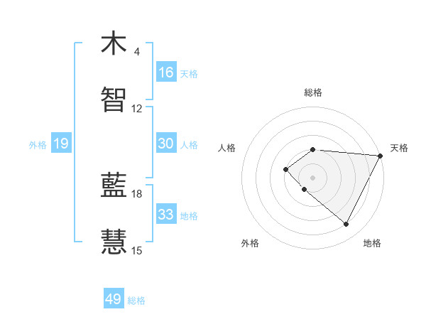木智 藍慧さんを姓名の画数から五運を鑑定