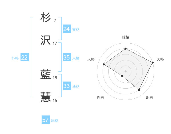 杉沢 藍慧さんの総格は57画の4点!
