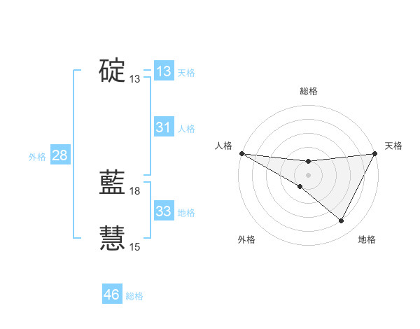 碇 藍慧さんの天格は13画の5点!