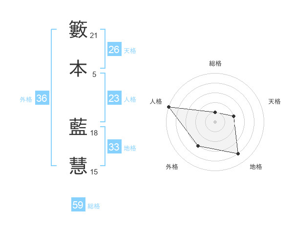 籔本 藍慧さんを姓名の画数から五運を鑑定