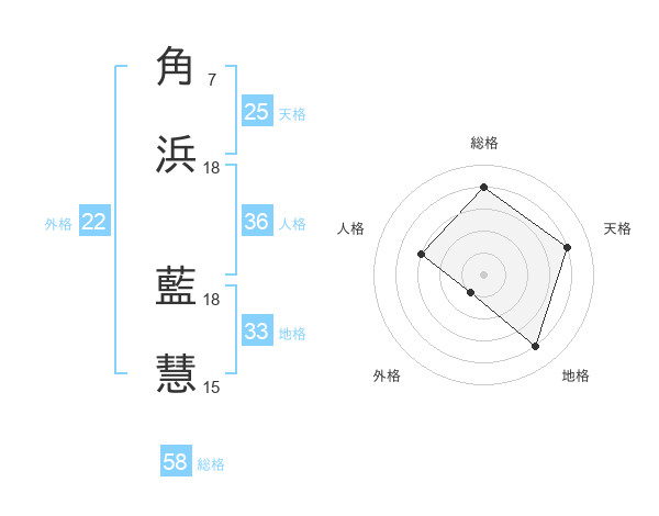 角浜 藍慧さんの総格は58画の4点!