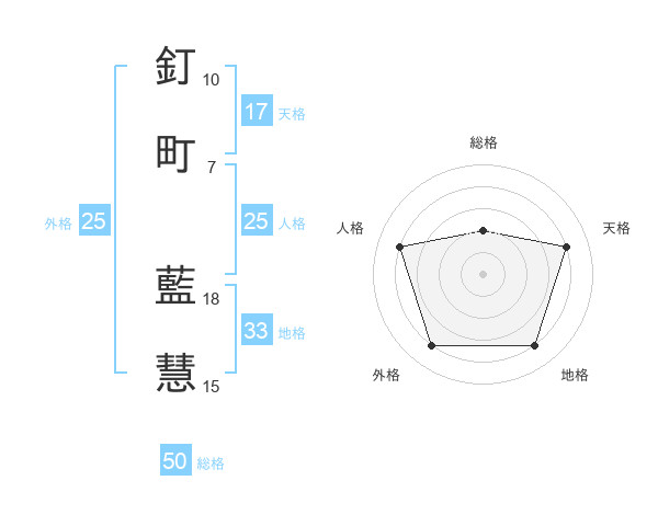 釘町 藍慧さんを姓名の画数から五運を鑑定