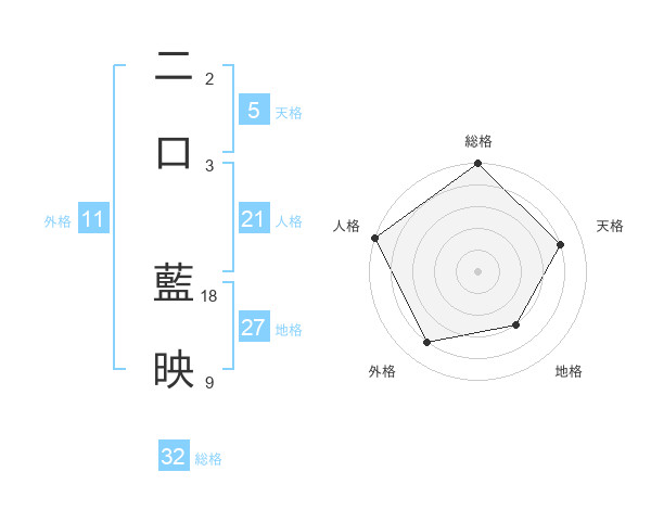 二口 藍映さんの総格は32画の5点!