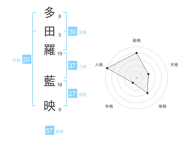 多田羅 藍映さんの総格は57画の4点!