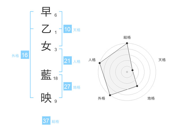 早乙女 藍映さんを姓名の画数から五運を鑑定