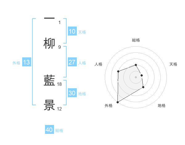 一柳 藍景さんの外格は13画の5点!