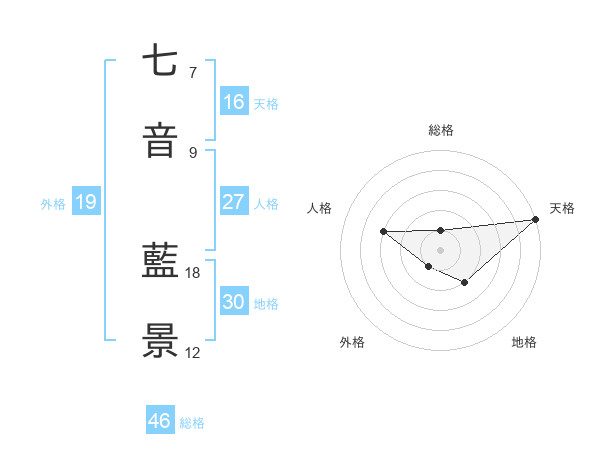 七音 藍景さんの天格は16画の5点!