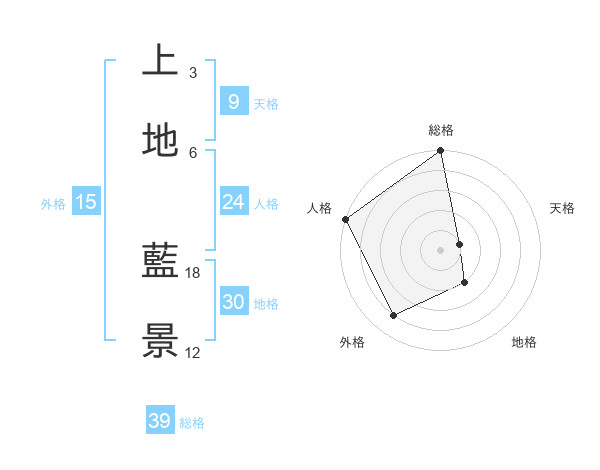 上地 藍景さんの総格は39画の5点!