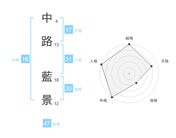 中路 藍景さんの総格は47画の5点!