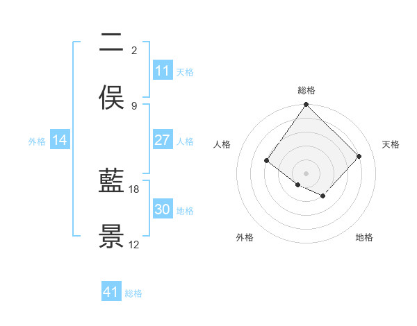 二俣 藍景さんの総格は41画の5点!