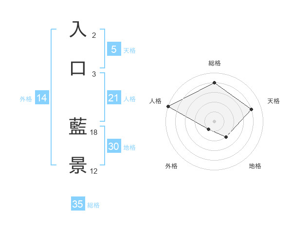 入口 藍景さんの総格は35画の4点!