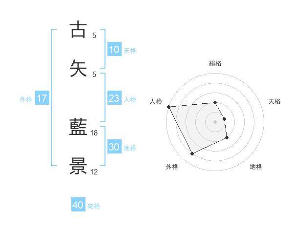 古矢 藍景さんの人格は23画の5点!