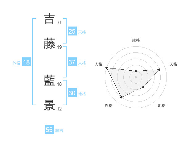 吉藤 藍景さんの人格は37画の5点!