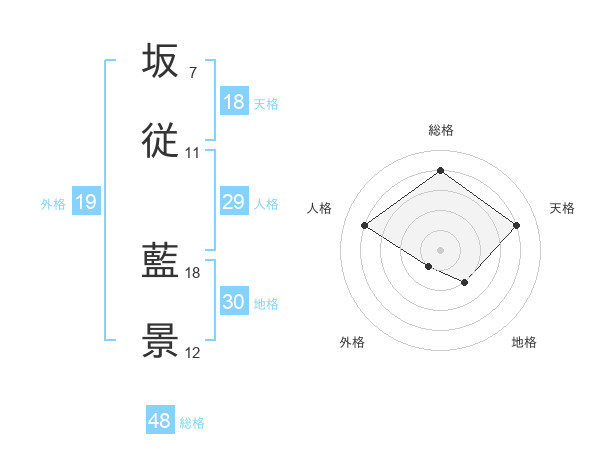 坂従 藍景さんの総格は48画の4点!