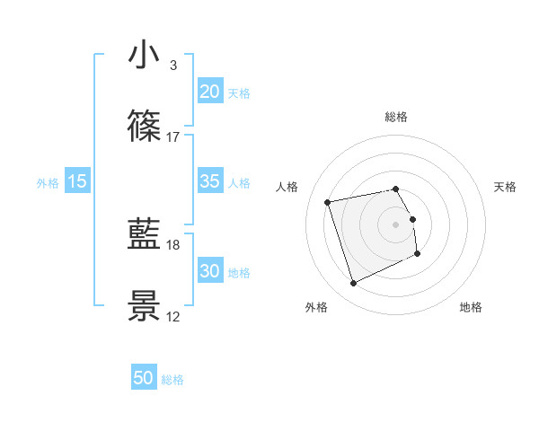 小篠 藍景さんの天格は20画の1点!