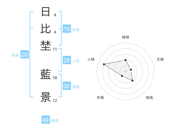 日比埜 藍景さんを姓名の画数から五運を鑑定