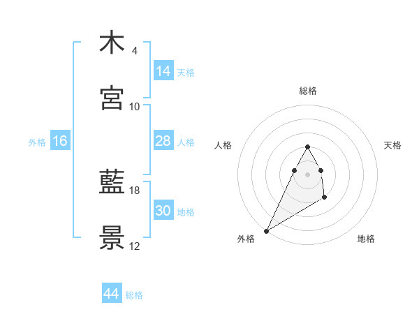 木宮 藍景さんを姓名の画数から五運を鑑定