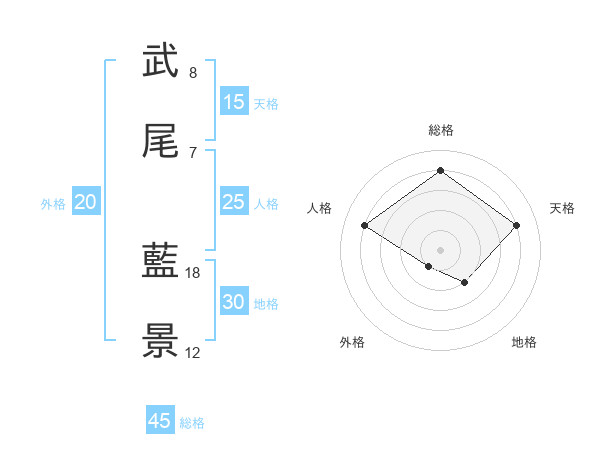 武尾 藍景さんの総格は45画の4点!