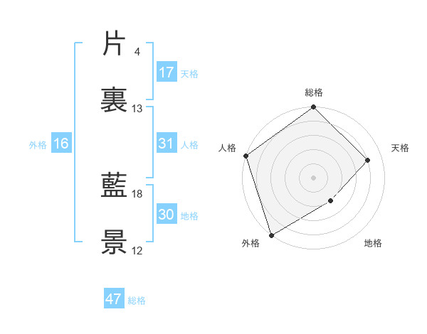 片裏 藍景さんを姓名の画数から五運を鑑定