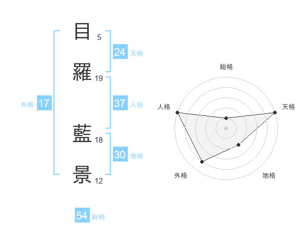 目羅 藍景さんを姓名の画数から五運を鑑定