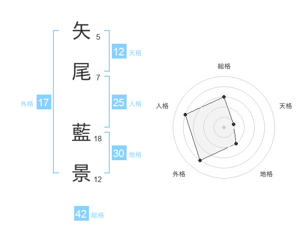 矢尾 藍景さんを姓名の画数から五運を鑑定