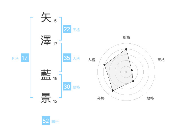 矢澤 藍景さんを姓名の画数から五運を鑑定