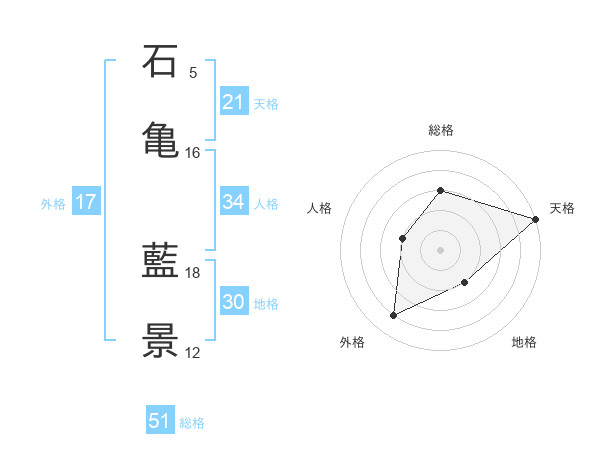 石亀 藍景さんの総格は51画の3点!