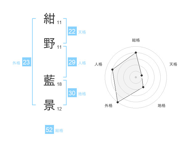 紺野 藍景さんを姓名の画数から五運を鑑定
