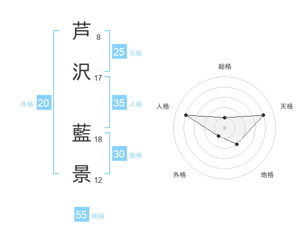 芦沢 藍景さんの総格は55画の1点!