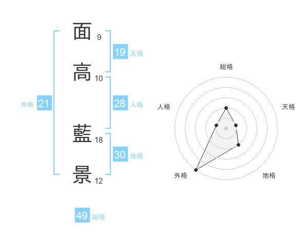 面高 藍景さんの外格は21画の5点!