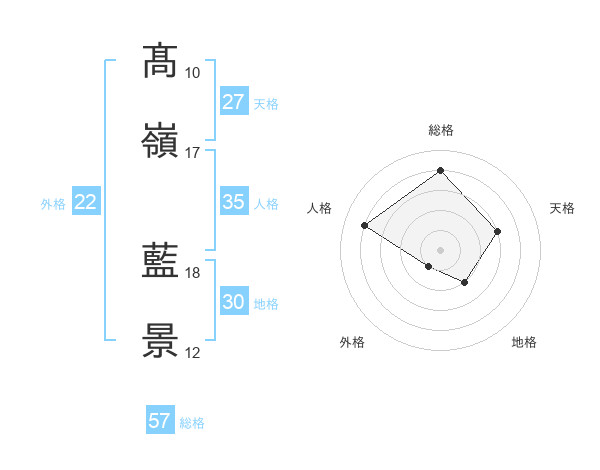 髙嶺 藍景さんの総格は57画の4点!