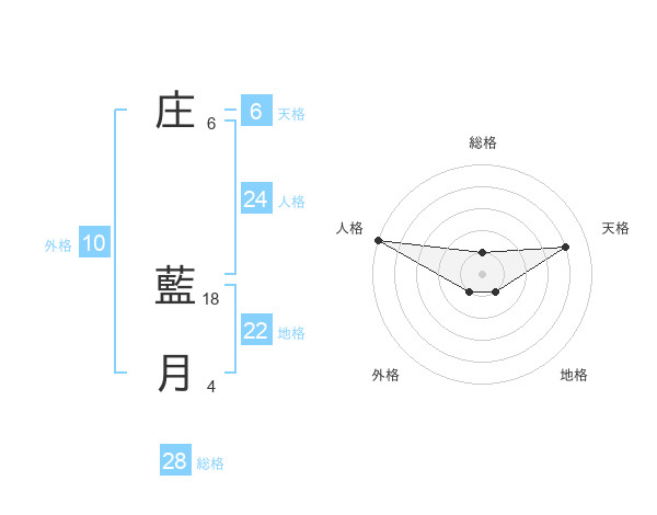 庄 藍月さんの総格は28画の1点!