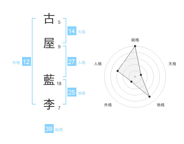 古屋 藍李さんの総格は39画の5点!