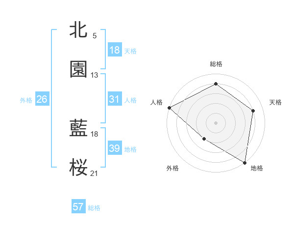 北園 藍桜さんを姓名の画数から五運を鑑定